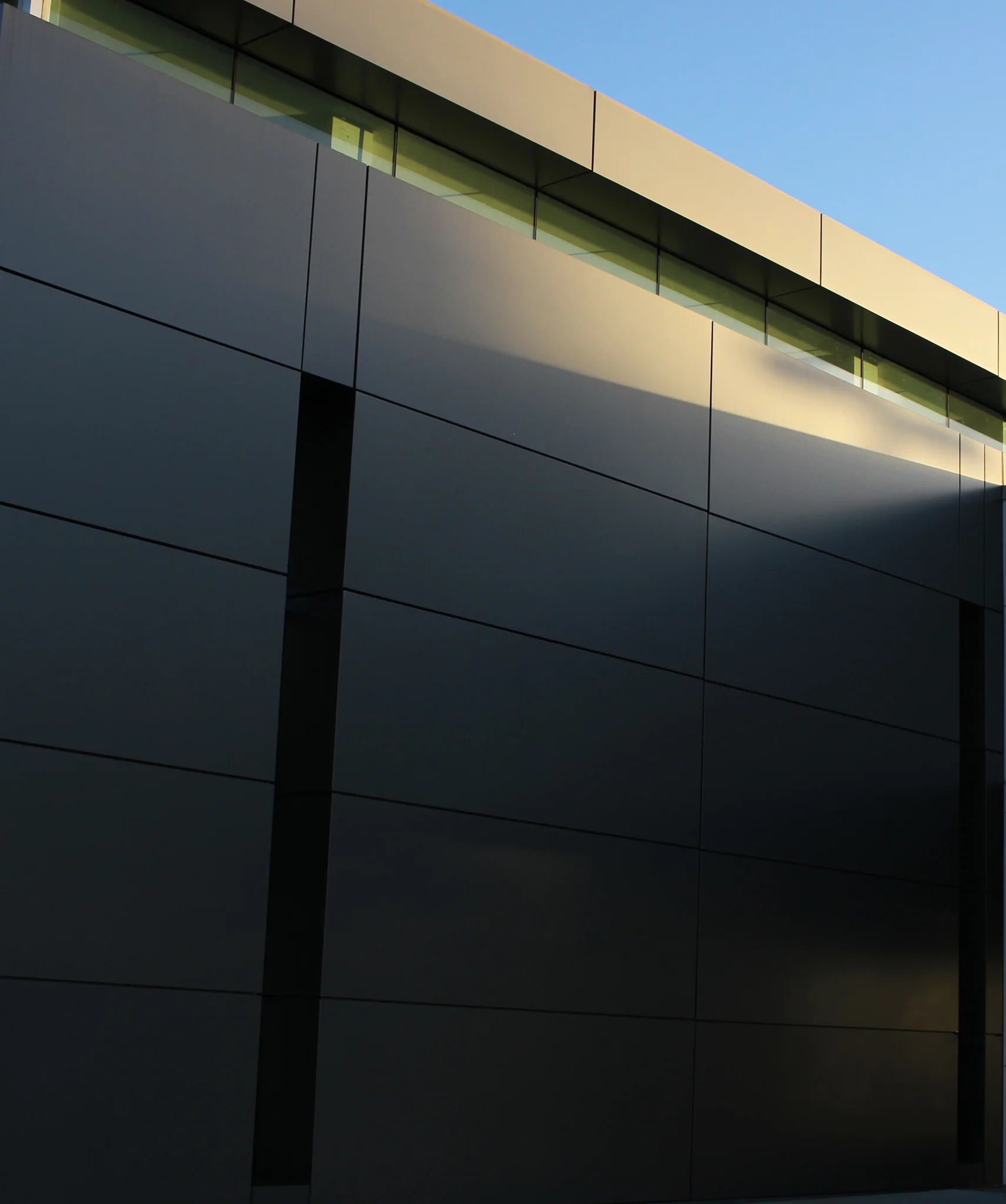 This 27,000 SF automotive body shop straddles the edge of a Residential/Commercial threshold in Pasco county Florida. Guests are greeted by a palette of metal textures that break down to a human scale as one approaches the building. A red frame cuts into the corruagated mass of the building to reveal the glazed office block and vertical ventilation slots that cool the building. On the South facade a perforated mural reminding guests of the clients automotive history shoulders the entry canopy and provides protection from the intense Florida sun.